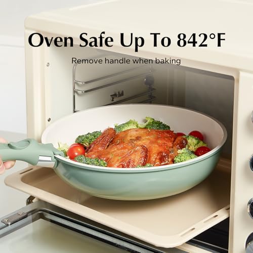 Redchef Ceramic Nonstick Pans and Pots Set, Ceramic Cookware Set with Detachable Handles16Pcs, Induction Dishwasher Oven Safe Kitchen Cooking Set, PFAS PFOA & PTFE Free, Green