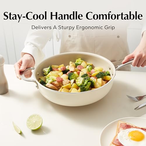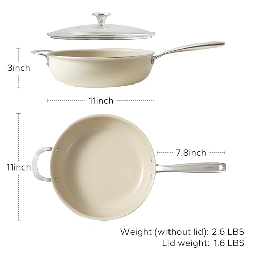 Redchef Ceramic Saute Pan with Lid, 28cm Nonstick Deep Frying Pan, 5QT Jumbo Cooker with Helper Handle & Lid, Non Toxic Ceramic Pan,Oven Safe, PFAS PFOA & PTFE Free