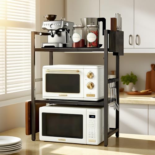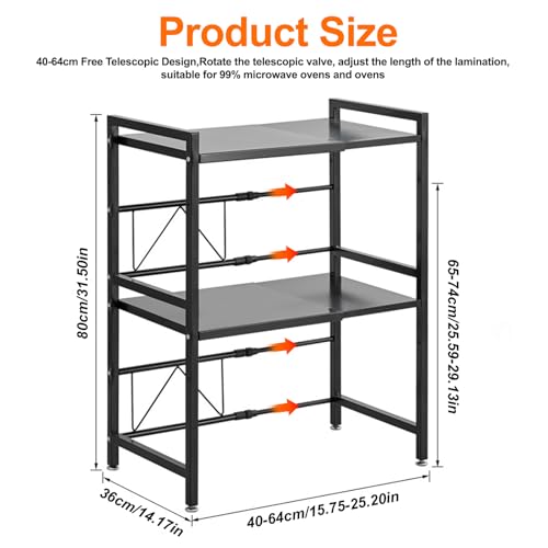 - Adjustable Design: Adapts to unique kitchen configurations with expandable length (15.7–25.2 inches) and modular tier heights. Resize the frame to fit large microwaves or compact air fryers, then raise or lower shelves to optimize counter space utilization and ease of access