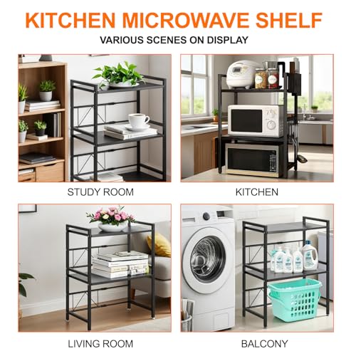 - Space-Saving Solution: Optimize kitchen storage with a compact expandable microwave rack. Efficiently house your microwave, air fryer, toaster or small oven alongside spice jars and utensils in an organized setup that minimizes clutter and maximizes functionality. The compact design collapses to save space when not in use, offering flexibility for narrow or hard-to-reach areas