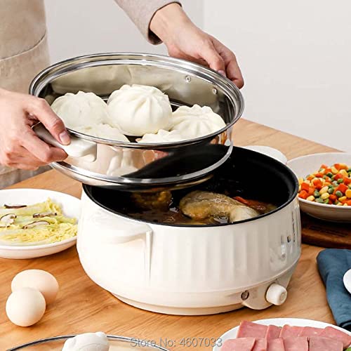REJOON 220v Multifunctional Electric Cooker Heating Pan Stew Cooking Pot Hotpot Noodles Eggs Soup Steamer Rice Cooker Dormitory Home (Color : 22cmindiameter, Size : Withoutsteamer)