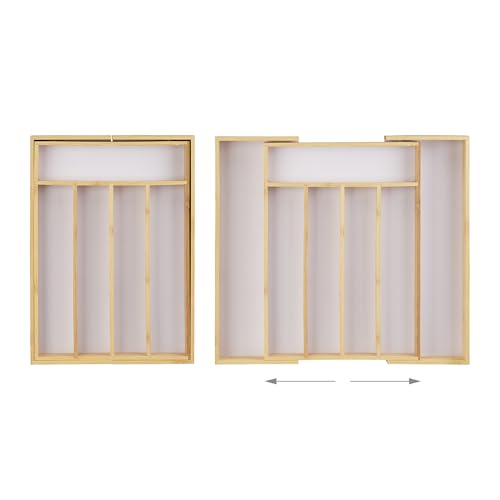 Relaxdays Bamboo Cutlery Tray, Extendable Width, 5 to 7 Compartments, Drawer Insert, 5 x 39 x 35.5 cm, Natural/White