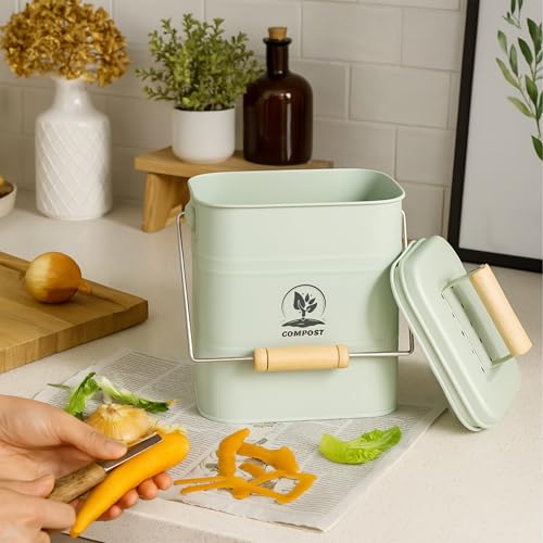 - Kitchen: Compost bin with lid for collecting food waste, like vegetable scraps and eggshells