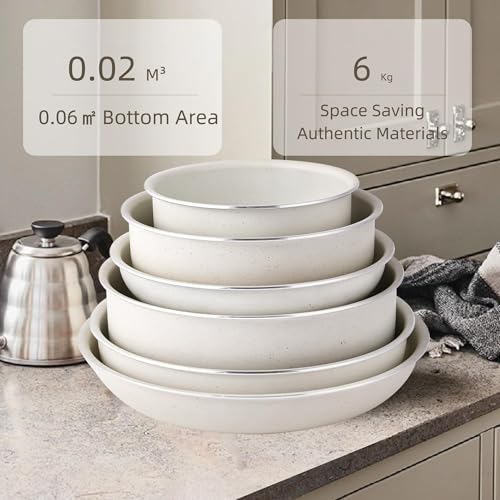 RIOVARM Induction Pots and Pans Set with Lids Non Stick Cookware Set with Detachable Handles Granite Coated Pot & Pan Sets with Removable Handles Stackable Kitchen Cookware Camping Pan Set PFOA Free