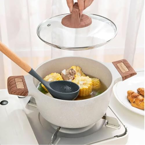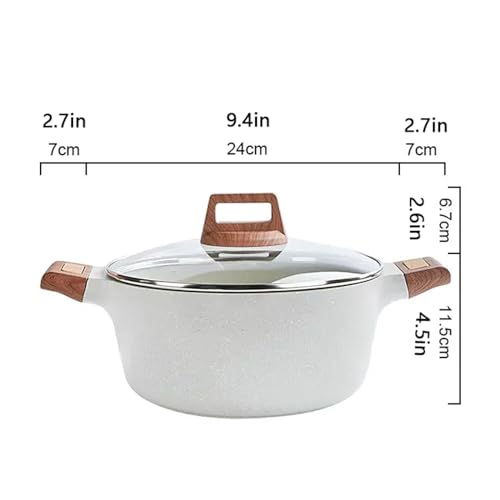 - ERGONOMIC DESIGNED KNOB AND HANDLE – Its elegant casserole builds with heat resistant bakelite knob and handle with beautiful wood design (NOT REAL WOOD). Glass lid with steam vent makes viewing food easily.
