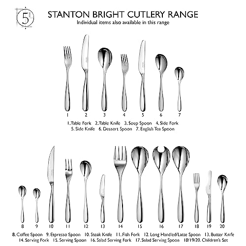 BRITISH DESIGN – Stanton Bright 42 piece cutlery set for 6 people is formed from the highest quality stainless steel. Forks and spoons are made from 18/10 stainless steel and knives are manufactured from grade 420 to provide the finest possible cutting edge.