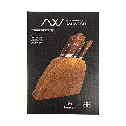 Rockingham Forge Ashwood Series 5 Piece Wooden Knife Block Set Including German Steel Blades with Heat-Treated Handles,RF-1740/6