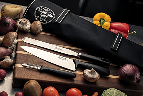 - SET CONTAINS: This 10-piece set is made up of 9 kitchen knives from the Rockingham Forge Essentials range and 1 knife storage roll