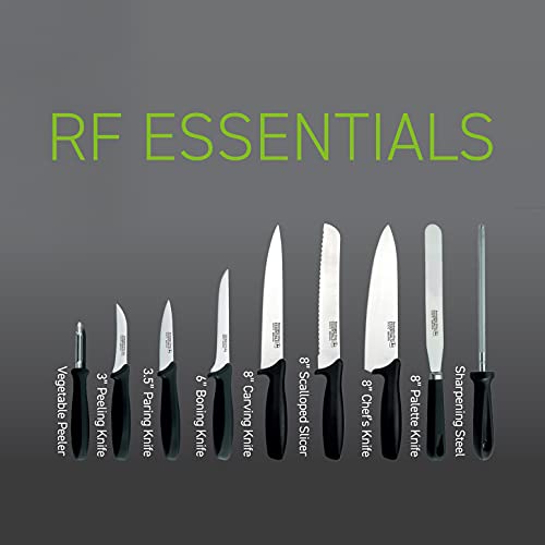 - KNIVES INCLUDED: 1 x 8” Palette Knife, 1 x 8” Chef’s Knife, 1 x 8” Scalloped Slicer, 1 x 8” Carving Knife, 1 x 6” Boning Knife, 1 x 3.5” Paring Knife, 1 x 3” Peeling Knife, 1 x Vegetable Peeler, 1 x Sharpening Steel