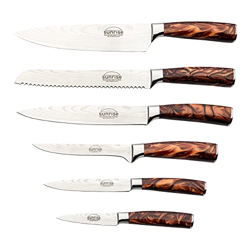 Rockingham Forge Sunrise Collection 7-Piece Kitchen Set – Premium Stainless Steel With Resin Handles – Chef's, Carving, Bread, Boning, Utility, and Paring Knives