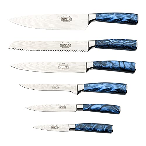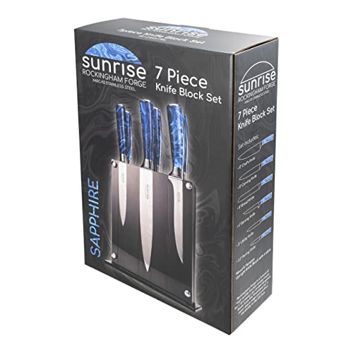 Rockingham Forge Sunrise Collection 7-Piece Kitchen Set – Stainless Steel Blades, Resin Handles – Chef, Carving, Bread, Boning, Utility, Paring Knives