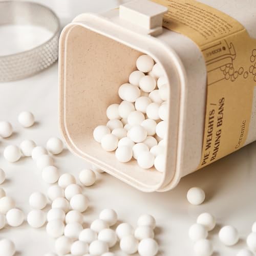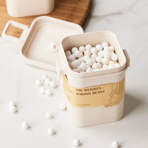 ROCKSHEAT Ceramic Baking Beans Pie Weights Natural Food Grade Crust & Pastry Utensils with Sturdy Container (2.2lb/1000g) White