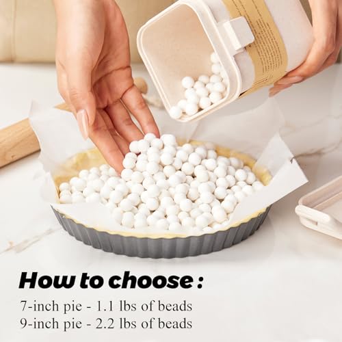 - Reusable, with high intensity structure, rock hard and solid, durable for years. Approx 2.2Lb@0g. ENOUGH beads should be used on the crust to weight down the pie crust better, a 7-inch pie should be weighted by at least 1.1Lb(500g) beads, for 9-inch pie, at least 2.2Lb (1000g) beads.