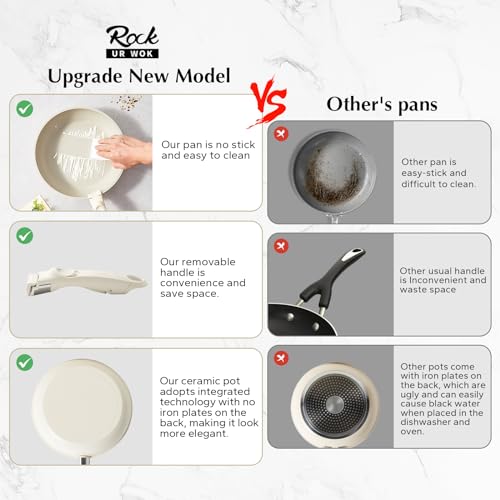 Rockurwok 7pcs Pots and Pans Set Non Stick, Ceramic Cookware Set Detachable Handle, Induction Nonstick Cookware Set Non-toxic RV Kitchen Cooking Set with Removable Handle, PFAS and PFOA Free (White)