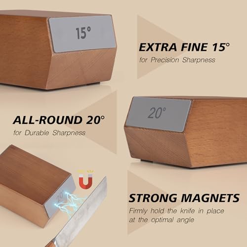 - 【Two Degrees Sharpening Stone】Two standard magnetic tilt Angle ensures that the entire blade can be evenly sharpened, 15°for a fine edge, 20°for a robust blade.