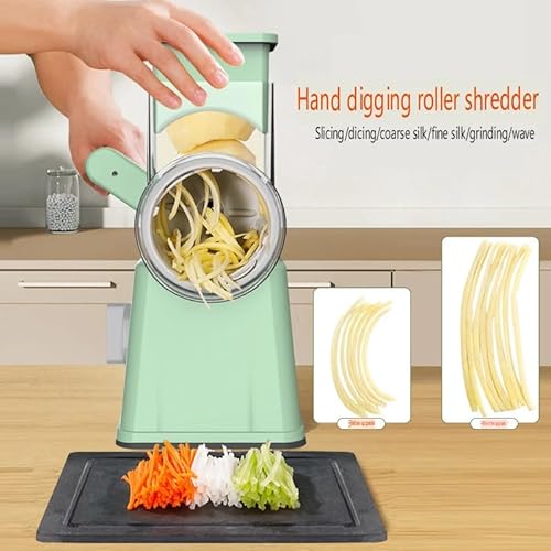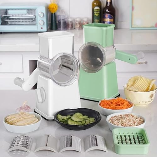Rotary Cheese Grater Vegetable Slicer – Food Chopper, Vegetable Slicer, Cutter, Grater,Durable Stainless Steel Surface and Blades Kitchen Gadgets Sets with Container