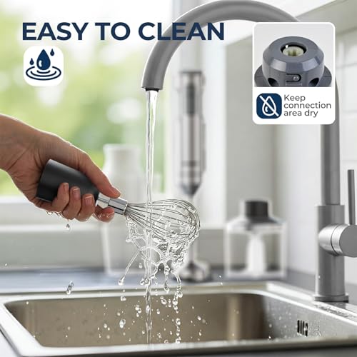 - Multifunctional and Easy to Clean: This hand blender comes with 700ml measuring cup, whisk, 500ml food chopper and other kitchen gadgets, which can be removed and replaced with a simple twist, and can be cleaned quickly for pureeing, emulsifying, or whipping.