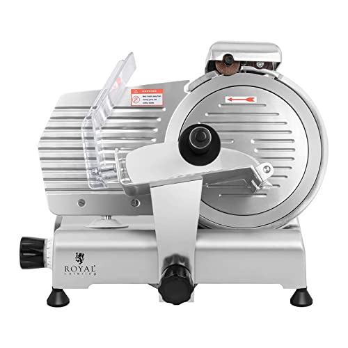 Royal Catering Commercial Meat Slicer Electric Food Slicer Deli Slicer Ø 250mm 480rpm 0-8mm RCAM-250E (Integrated Blade Sharpener, Slide and Ball Bearings, Carriage 200mm)