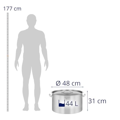 Royal Catering Induction Cooking Pot 44 l Ø 45 cm Bottom Thickness 5 mm 3-ply with Lid for All Stove Types, 20% Faster Cooking, 30% Energy Saving Stainless Steel Soup Pot