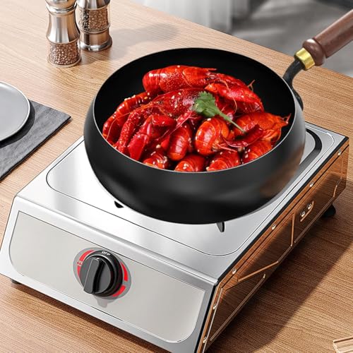 Rrlihjgu Non Stick Pan – Stir Fry Wok with Wooden Handle | No Coating, Heat-Resistant, Ergonomic Kitchen Tool for Hotel Restaurant Home Outdoor Camping