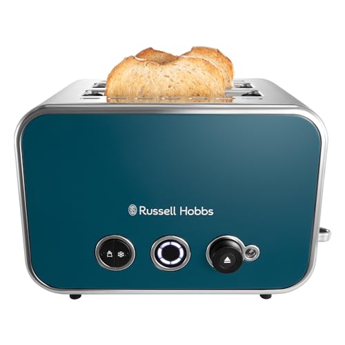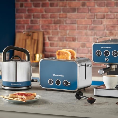Russell Hobbs 2 Slice Distinctions Toaster (Countdown to ready, Extra wide & long slots, 6 Browning levels & Defrost/Reheat/Cancel, Lift & Look feature, 1600W, Stainless Steel & Ocean Blue) 26431