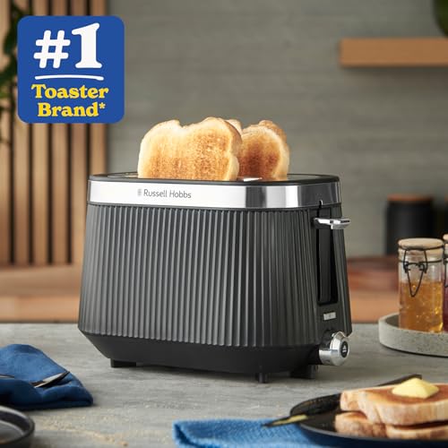 Russell Hobbs 2 Slice Toaster, Brontë Stone, Stylish Matte Design with Chrome Accents, Extra Wide Slots, 6 Browning Levels, Lift & Look Function, Removable Crumb Tray, 1960W (Black)