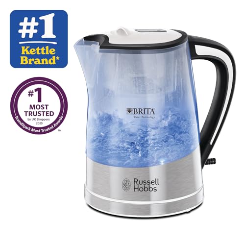 Russell Hobbs Brita Filter Purity 1.5L, Fast boil 3KW Electric Cordless Kettle for cleaner, clearer water (Brita Maxtra+ Cartridge inc with replacement reminder, Perfect pour spout, Plastic) 22851