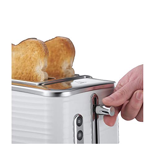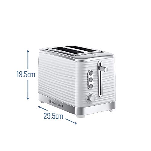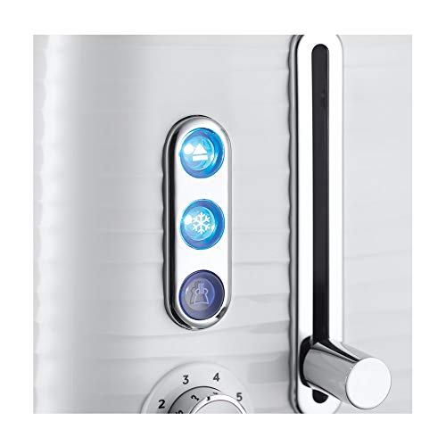 Russell Hobbs Inspire 2 Slice Toaster (Extra wide slots, High lift feature, 6 Browning levels, Frozen/Cancel/Reheat function with Blue LED illumination, 1050W, White textured high gloss) 24370