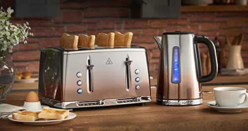 Russell Hobbs Luna Long Slot Toaster, Long Slice or Two Slice Stainless Steel Toaster, 24310 & 25113 Eclipse Polished Stainless Steel and Copper Sunset Ombre Electric Kettle, 3000 W, 1.7 Litre