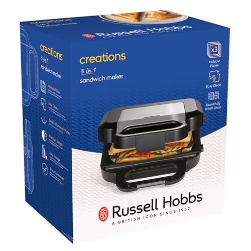 Russell Hobbs Sandwich Maker 3 in 1 Creations (Waffle maker, panini press or grill, 3 removable plates with non-stick coating, dishwashersafe parts, BPA free) 26810