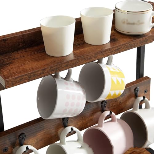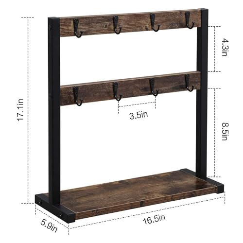 Rustic Coffee Mug Holder Stand 2 Tier Countertop Mug Tree Holder Rack with Storage Base for Kitchen Holds 8 Mugs Rustic Brown