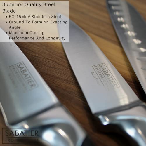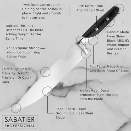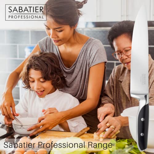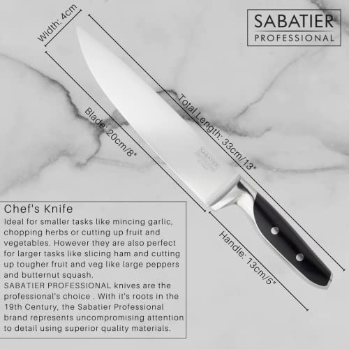 - Sabatier Professional Kitchen Chef Knife – 8in/20cm Full Tang Blade Forged from High Chrome Taper Ground Stainless Steel, Twin Rivet Comfort Handle. Sharper for Longer, by Taylors Eye Witness