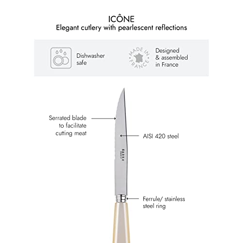 SABRE PARIS – Icône 6Pc Steak Knife Set – Premium Stainless Steel Knives – Serrated Knife Set – Pearl White