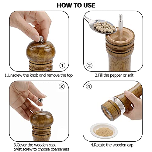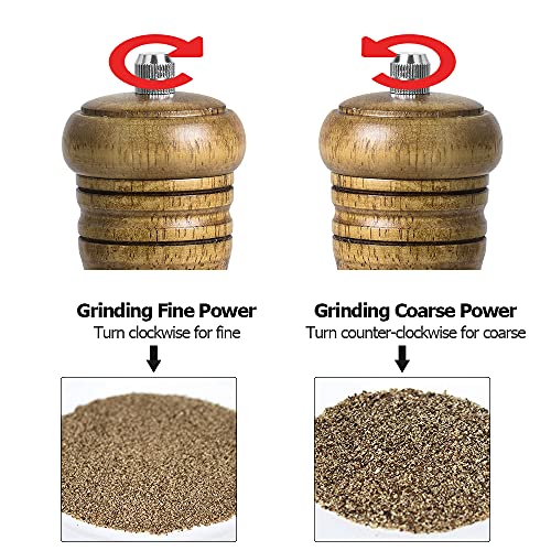 - ❤Easy to Use: Salt and pepper grinder is easy to use. Just twist screw on the top, turn clockwise for fine, turn counter-clockwise for coarse. 6.5 inch height pepper grinder design, simply unscrew the metal screw and remove the top of the grinder to add your own seasoning. With perfect balance and weight, avoids troublesome refilling, saves time. The clear acrylic part of pepper mill ensure you can know about the level of your spice, let you know when it is time to refill.