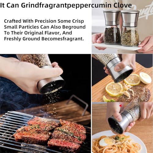 - Effortless Cleaning: The pepper mill set is designed for easy cleaning, as both glass and stainless steel materials are dishwasher safe. The salt and pepper grinder can be fully disassembled, simplifying the cleaning process. Each component detaches easily, promoting hygiene and ensuring a pristine interior.