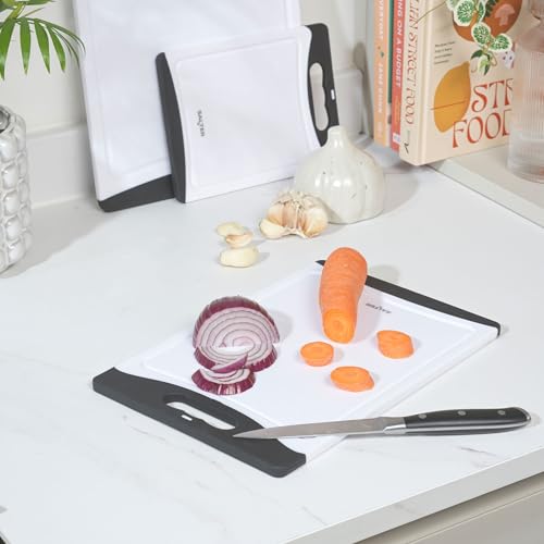 - NON-SLIP: Designed with your safety in mind, these cutting boards boast a non-slip grip so you can cook without the worry of cutting yourself.