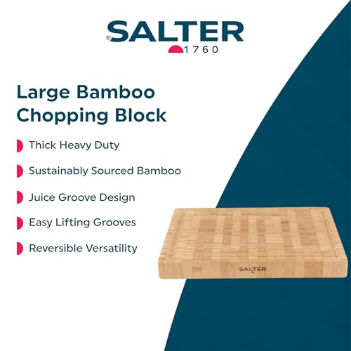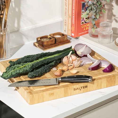 Salter BW13308EU7 Bamboo Chopping Board – Large Wooden Cutting Butchers Block, Thick Heavy Duty Board for Carving Meat, Juice Groove, Cheese Platter Charcuterie, Reversible, FSC®-Certified, 42cm