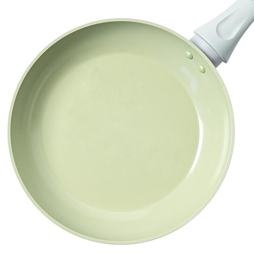 - With soft-touch handles that stay cool during use for comfortable cooking, brighten up your kitchen with this unique green frying pan set.