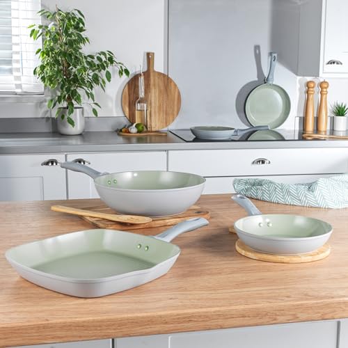 Salter COMBO-7528 Earth Frying Pan Set – Healthy Ceramic Non-Stick Coating, PFAS-Free Induction Cookware, Aluminium Cooking Skillets, Easy Clean, PFOA/PTFE-Free, Stay Cool Handle, 20/24cm, Green