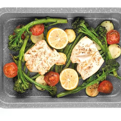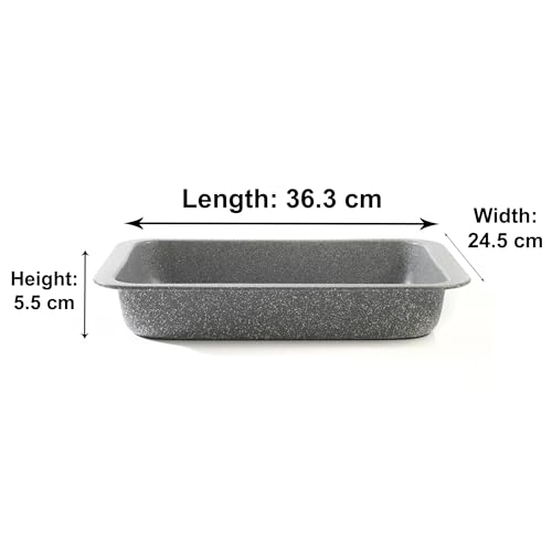 Salter Marblestone Roasting Tin Set of 2 – 36cm Non-Stick Roasters, Lightweight Carbon Steel, Easy Wipe Clean, High Side Rectangular Roasting Trays, Oven Safe to 220°C, PFOA Free, Deep Baking Pan