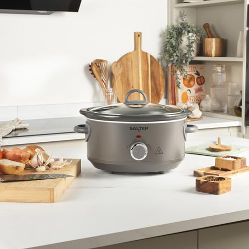 Salter Cosmos 3.5 L Slow Cooker – 3 Heat Settings, Dishwasher Safe Removable Ceramic Pot, Tempered Glass Lid, Family Batch Cooking, Cool-Touch Handles, Keep Warm, Stews, Casseroles, 200W, EK6249