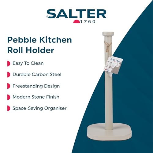 Salter Pebble Kitchen Roll Holder – Freestanding Paper Towel Holder, Countertop Stand, Worktop Organiser Storage Rack for Standard Kitchen Rolls, Classic Design, Carbon Steel, 15 x 34 cm, Stone