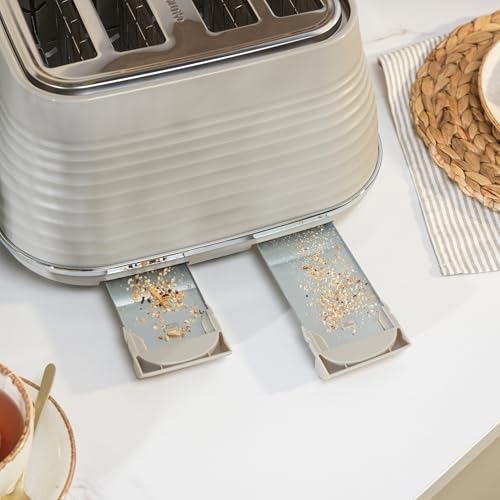 Salter Ripple 4-Slice Toaster – Defrost, Reheat, Cancel, Wide Toasting Slots, Bagels/Crumpets, 6 Browning Levels, Removable Crumb Tray, High-Lift, Self-Centring, Textured Ripple Design, Taupe, 1630W