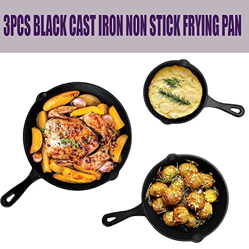 SAMTEK 3-Piece Pre-Seasoned Cast Iron Skillet Set, Oven Safe Non-Stick Cookware for Indoor Barbecue & Campfire, 6-Inch to 10-Inch, Black