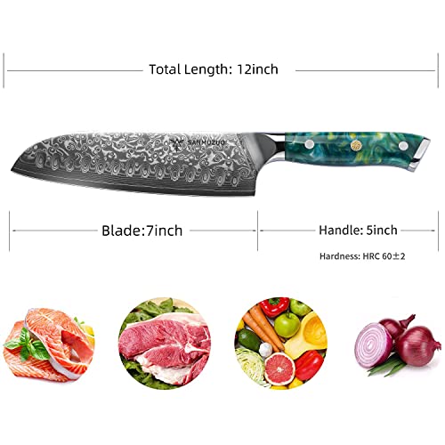 SANMUZUO Santoku Knife – 7 inch – Xuan Series – VG10 Damascus Steel Kitchen Knife – Resin Handle (Jude Green)
