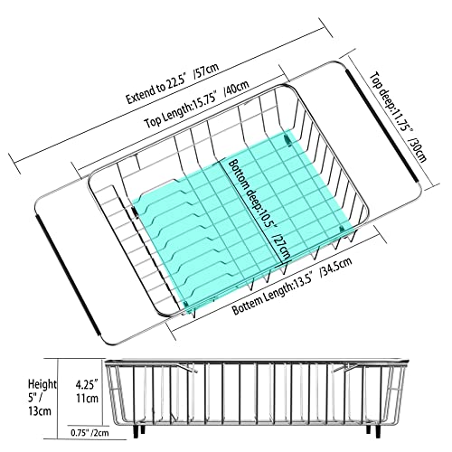 - SIZE- Outer – approximately 15-3/4"(40cm) L x 11-3/4"(30cm) W x 5 -1/8"(13cm) H(Collapsed) and 22inches(56cm) Long (two handles fully Extended) to better fit your sink.With adjustable bars fits over the sink, on countertop or in the sink and takes up only a fraction of the space.