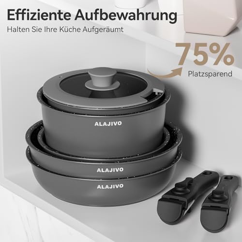 Saucepan Set with Removable Handle, 17-Piece Pan Set with Non-Stick Coating, Induction Cooking Pot Set with Lid, for All Hobs, Oven-Safe, Oven-Safe (Grey)