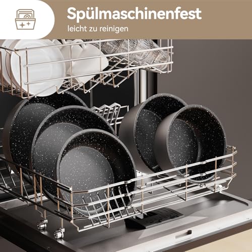 - Suitable for all hob types – Our cookware set is suitable for all stovetops, including gas, electric and induction hobs. The padded base heats up quickly and evenly, so regardless of whether you're preparing a quick meal or hosting a dinner party, thanks to the excellent heat distribution of the set, you get even results every time.