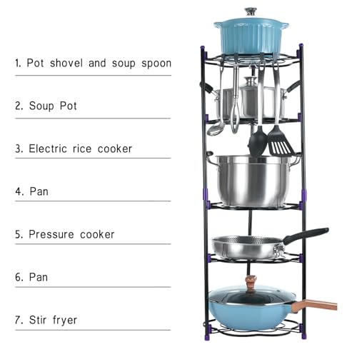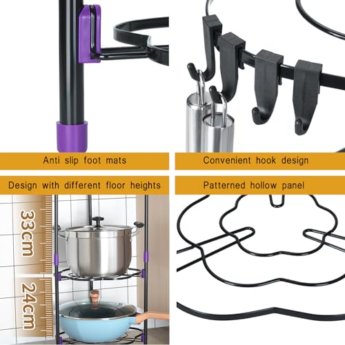 Saucepan Storage Organizer – 2-5 Tiers Pan Stand Pot & Pan Racks Pan Storage Organiser Pot Stand, Black – Space Saving Kitchen Organizer