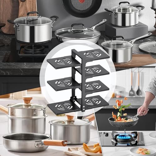 - Innovative Design: Featuring a unique design, this organiser accommodates various cookware, making it the ideal solution for efficient cookware storage. Its stylish multi-tiered rack design is a revolution for home chefs aiming to optimise their kitchen space.